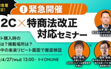 【緊急開催】D2C ✕ 特商法改正対応セミナー 〜カート購入時の表記は?掲載場所は?開発中の楽楽リピ…